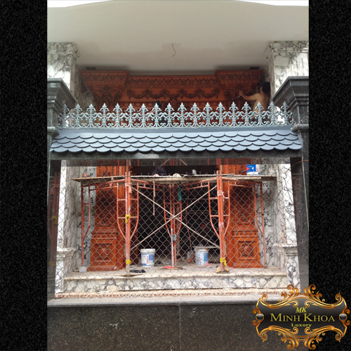 Biệt Thự được thiết kế theo phong cách Hoàng Gia châu Âu, thi công hoàn toàn bằng gỗ gõ đỏ Lào. Chất liệu gỗ quý với vân gỗ tự nhiên đẹp, kết hợp với màu kem của đá Marble trong nội thất,đã tạo ra một không gian sang trọng, quý phái, đồng thời cũng mang lại cảm giác gần gũi, nhẹ nhàng cho người thưởng ngoạn.